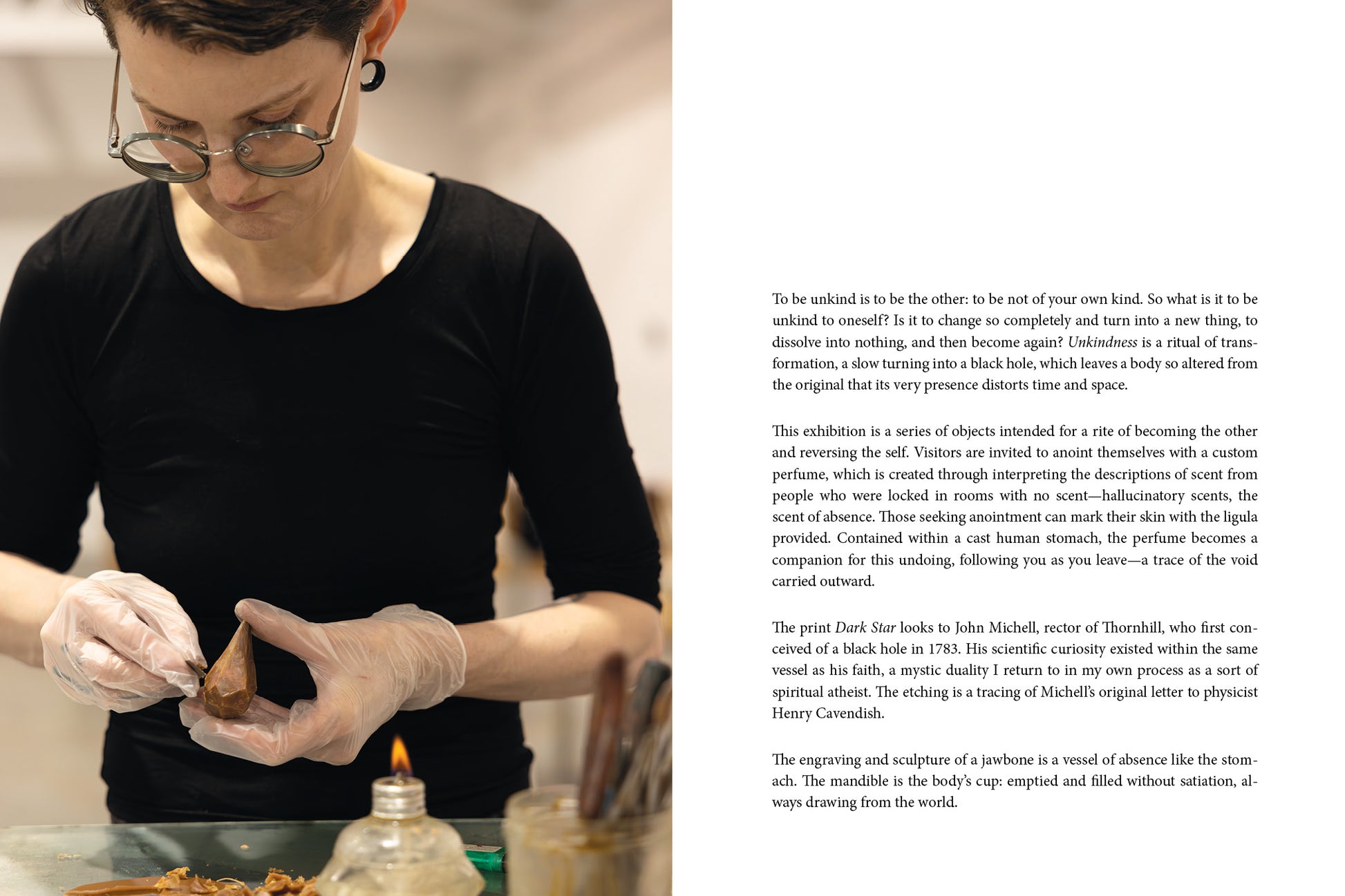 In "Unkindness," Camilla Taylor explores both the vacuum of loss and the emergence into a new world and new self – radically unlike the past. Multiple bronze works – representations of the body – suggest an emptiness, a blackout. Cast from hand-sculpted clay and wax, they function as preservations of something made then lost.